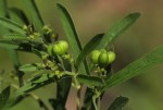 Suffrutex growing from an extensive rhizomatous woody rootstock. Stems 1-many, up to c. 50 cm tall, unbranched or sparsely branched, woody at the base, covered in short whitish hairs. Leaves with an unpleasant smell when crushed, 3-whorled or opposite, subsessile, narrowly lanceolate to oblanceolate, up to 10 × 2.2 cm, hairy and gland-dotted below; margin with several spaced teeth in the upper half or entire. Flowers in c. 3-flowered axillary clusters, unpleasantly scented, white or creamy-white; corolla tube up to 4.5 cm long, abruptly funnel-shaped at the top; stamens mauve to deep purple, exserted up to 3.5 cm. Fruit deeply 4-lobed, c. 7 × 8 mm, black.