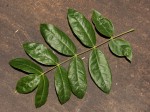 Small to medium-sized tree with a conspicuously fluted trunk. Bark smooth, silver-grey with a clear sap when damaged; young trees almost square-stemmed. Leaves imparipinnate with 3-6 pairs of leaflets and a terminal leaflet; leaflets narrowly ovate, up to 7 × 3.3 cm, dark green, softly velvety on the leaflets, densely hairy on the rhachis; margin entire or obscurely toothed. Flowers in slender axillary panicles, yellowish, appearing with the leaves. Fruit ovoid, c. 1.2 cm long, hairless, reddish when ripe, splitting to reveal a black seed with a bright red 4-lobed pseudo-aril. |