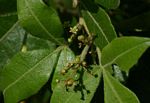 Shrub or small tree. Leaves trifoliate with lanceolate to oblong-elliptic leaflets, green above; pale yellow-green below; midrib prominent above with long spreading hairs; leaflet often blunt or notched at the apex; margins entire. Flowers very small, greenish-yellow, in loose axillary and terminal inflorescences. The fruits are small and thinly fleshy, red or yellowish-brown when ripe. |