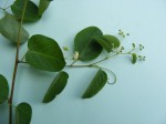 Climbing shrub, reaching up to 6 m. Stems hairless, with hairless coiled tendrils. Leaves more or less broadly ovate, 1.5-3.5 cm long, hairless above, very finely velvety below, mucronate at the apex; margin entire. Flowers in axillary umbels on hairless peduncles, yellowish. Capsule obovoid, hairless. |