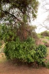 Usually a dense scrambling shrub. Bark dark grey-brown; stems mostly round or only slightly fluted; young branches furry brown. Leaves often drooping, broadly ovate to obovate, sometimes almost round, up to 7 × 7.5 cm, 3-veined from the almost symmetric base, dull green to yellow-green, furry on both surfaces; apex rounded with a small point; base squarish to somewhat cordate; margin irregularly toothed. Flowers yellow, c. 2 cm in diameter, in axillary heads on stalks longer than 1 cm. Fruit spherical or shallowly 2-lobed, rarely 4-lobed, each lobe up to 14 mm in diameter, shiny yellowish-brown when ripe, covered with sparse whitish hairs. See G. flavescens for comparison. |