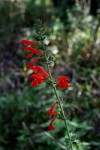 Erect perennial herb or subshrub, to 1 m. Stems with long fine white hairs. Leaves 3-6 × 1-3.5 cm, ± triangular; base usually cordate. Whorls 6-10-flowered. Corolla 20-24 mm, usually a brilliant scarlet, less often pink, salmon-pink or white; posterior (‘upper’) lip straight; anterior (‘lower’) lip broader and longer than the posterior; stamens long exserted. |