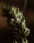 Erect or decumbent annual herb with opposite and decussate, widely spreading branches. Leaves often absent at flowering time; lamina 1.5-7 cm, ovate or elliptic. Inflorescences axillary, consisting of 2-3 umbels of 3-5 cymules per axil, developing at the lowermost stem nodes, becoming compound and forming dense axillary fascicles. Cymule bracts with length to width ratio 1.2-1.5:1; larger bract 5-8.5 mm long. Corolla 4-6 mm long, pink to purple, often found in bud only and then probably cleistogamous. Seeds with minute hooked tubercles. |