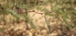 Multi-stemmed shrub or small tree. Branches reddish-brown, armed with paired straight spines. Leaves, bipinnate with only one pair of pinnae; leaflets in 7-18 widely spaced pairs, oblong, 10-25 mm long, hairless. Flowers in axillary spikes, yellow. Pods slender, woody, 10-25 cm long, straight, somewhat constricted between the seeds, indehiscent. |